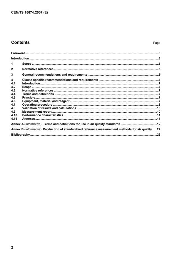 CEN/TS 15674:2007 is a technical specification published by the European Committee for Standardization (CEN). Its full title is "Air quality - Measurement of stationary source emissions - Guidelines for the elaboration of standardised methods". This standard covers: This document gives recommendations and specifies requirements for the elaboration of standardised reference methods of measurement for the field of stationary source emissions by CEN/TC 264, with or without reference to accreditation. It aims at facilitating in the working groups the elaboration and the harmonisation of the standards produced by CEN/TC 264. This document aims at ensuring that the specific requirements specified in CEN/TS 15675 are taken on board in the individual measurement standards either directly or by reference to EN 15259. This document specifies terms and definitions for use in other air quality standards. This document elaborates the CEN rules as given in CEN/BOSS and in the Internal Regulations Part 3 (PNE rules) in the field of stationary source emissions.