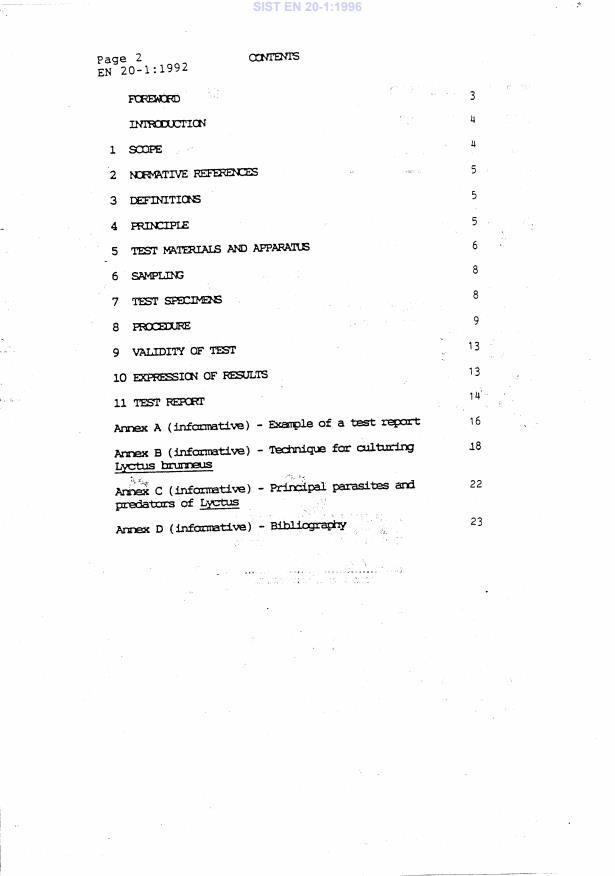 The standard EN 20-1:1992 provides a critical framework for assessing the protective effectiveness of wood preservatives against the wood-boring insect, Lyctus brunneus (Stephens). This document is particularly valuable for researchers and manufacturers in the wood preservation industry, as it specifies a laboratory method for evaluating various wood preservative formulations applied as surface treatments. The scope of EN 20-1 is comprehensive, focusing on the determination of protective effectiveness or toxic values of wood preservatives, which is crucial for ensuring the longevity and durability of treated wood products. It encompasses a wide range of formulations, including water-insoluble chemicals treated as active insecticides, organic formulations provided in various concentrated forms, and water-soluble materials such as salts. This flexibility allows for extensive applicability across different types of wood preservation chemicals, thereby enhancing its relevance in both research and practical applications. One of the strengths of this standard is its detailed methodology that facilitates reliable and reproducible results in a controlled laboratory setting. This ensures consistency in testing procedures and outcomes, which is vital for regulatory compliance and product development in the wood preservation sector. Furthermore, the relevance of EN 20-1 extends beyond mere compliance; it plays a pivotal role in advancing the understanding of wood preservation technologies and their effectiveness against specific pests. As the wood preservation industry faces increasing scrutiny regarding environmental impacts and efficacy, this standard serves as a critical tool for innovation and improvement in developing safer and more effective wood treatment solutions. In summary, EN 20-1:1992 stands as an essential reference for wood preservative testing, combining a robust methodology with broad applicability to various formulations. Its contributions to the field of wood preservation exemplify the balance between scientific rigor and practical necessity, making it a significant document for stakeholders involved in combating Lyctus brunneus infestation.