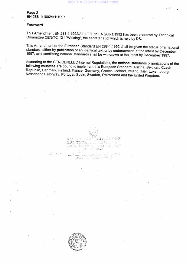EN 288-1:1992/A1:1997
