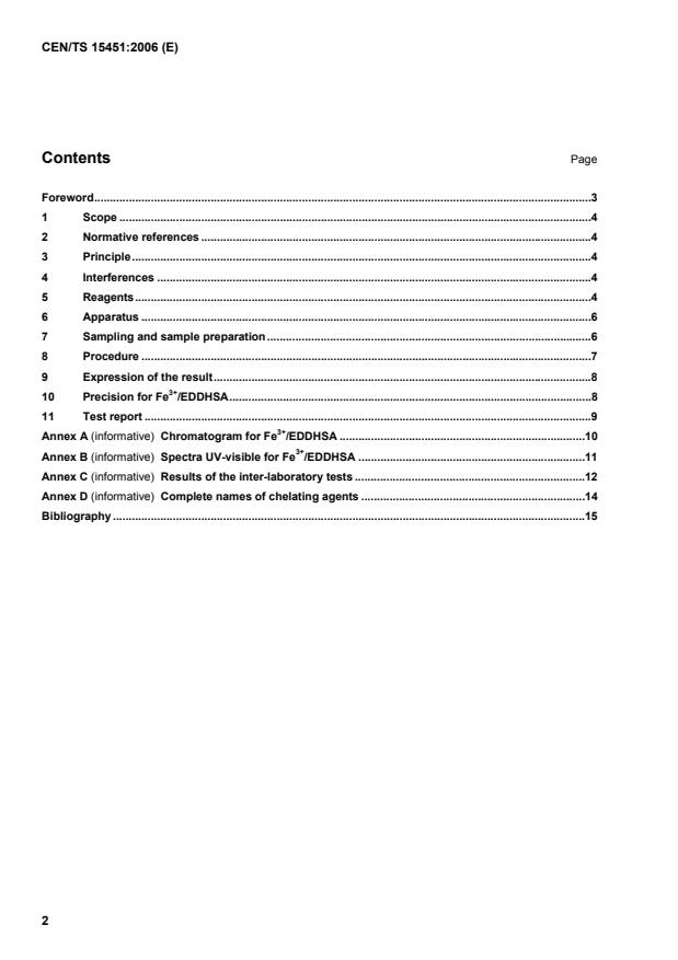 CEN/TS 15451:2006 is a technical specification published by the European Committee for Standardization (CEN). Its full title is "Fertilizers - Determination of chelating agents - Determination of iron chelated by EDDHSA by ion pair chromatography". This standard covers: This Technical Specification specifies a method for the chromatographic determination of the total amount of iron chelated by EDDHSA in commercial products.