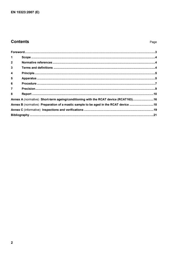 This European Standard specifies an accelerated ageing/conditioning procedure for bitumen, bituminous binders and bituminous mastics. The procedure involves rotating cylinder ageing (RCA), i.e binder ageing at moderate temperatures in a large cylinder rotating in an oven under oxygen flow conditions. Prior to long-term ageing with this method, samples are prepared in the condition they would be applied to the road. This method is also applicable to modified binders and bituminous mastics. NOTE For binders used in hot asphalt applications pre-conditioning of the sample would typically be by one of the methods given in EN 12607-1 or EN 12607-2 or directly in the RCAT cylinder to an equivalent ageing level. For binders used in bituminous emulsion and cut-back application, stabilising the sample would typically be by methods given in EN 14895. For bituminous emulsion, stabilising the sample can also be realised directly in the RCAT cylinder under a nitrogen flow (quantity-temperature-time have still to be experienced). WARNING — Use of this document can involve hazardous materials, operations and equipment, in particular, the use of a flow of oxygen as ageing atmosphere. This document does not purport to address all of the safety problems associated with its use. It is the responsibility of the user of this document to establish appropriate health and safety practices and determine the applicability of regulatory limitations prior to use. If there is a likelihood that more than 1 % mass fraction in a binder of volatile components is present, this procedure must not be used.