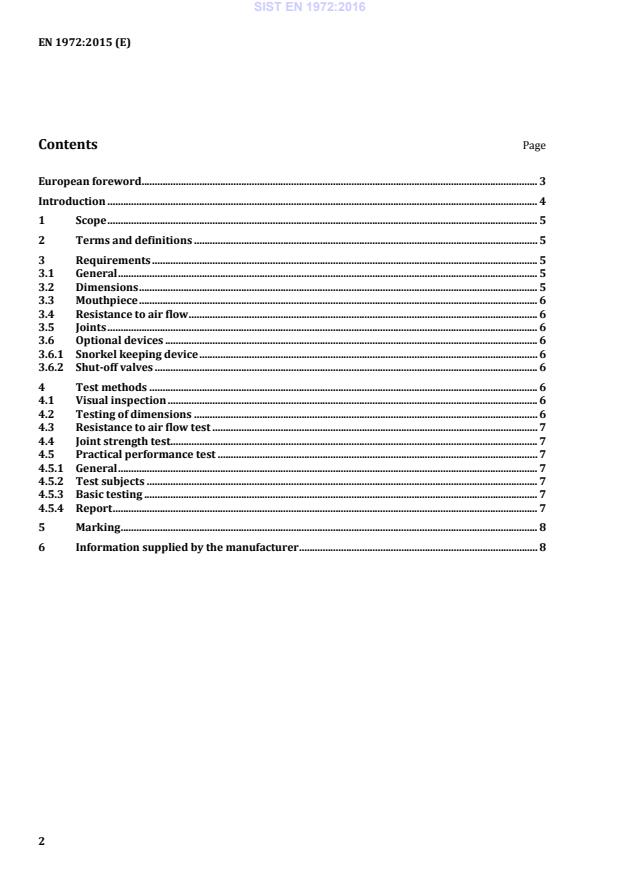 This European Standard is applicable to snorkels, which allow users to breathe at the water surface while floating with the face submerged. It covers snorkels used by swimmers and divers.