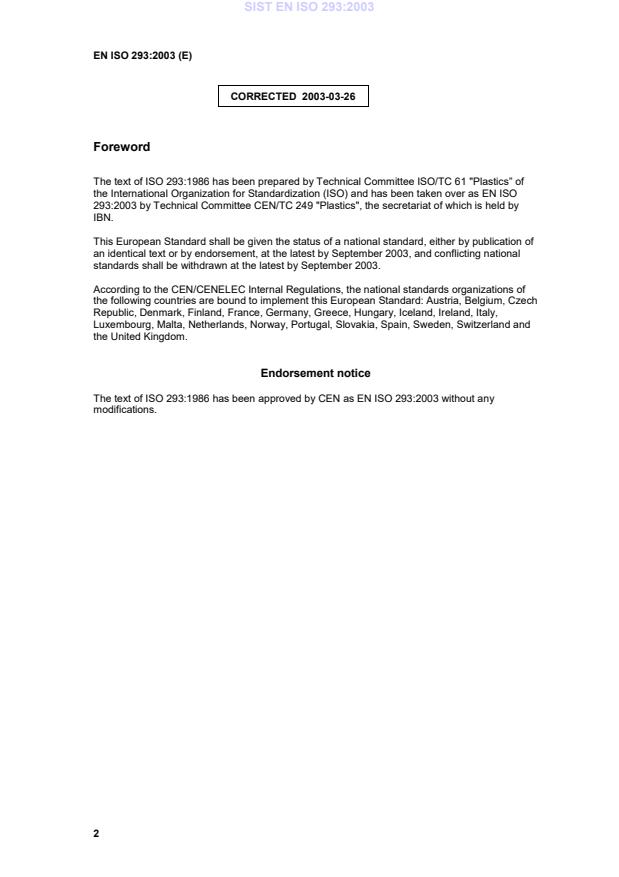 The text of ISO 293:1986 has been approved by CEN as EN ISO 293:2003 without any