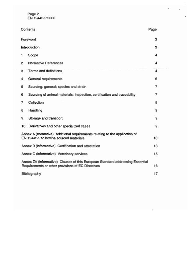EN 12442-2:2000 is a standard published by the European Committee for Standardization (CEN). Its full title is "Animal tissues and their derivatives utilized in the manufacture of medical devices - Part 2: Controls on sourcing, collection and handling". This standard covers: This Part of prEN 12442 specifies requirements for controls on the sourcing, collection and handling (which includes storage and transport) of animals and tissues for the manufacture of medical devices utilizing materials of animal origin other than in vitro diagnostic medical devices. Note 1: Requirements for the riks analysis of the use of materials of animal origin in medical devices are described in prEN 12442-1.