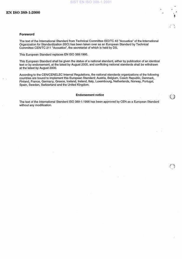 EN ISO 389-1:2000 is classified under the following ICS (International Classification for Standards) categories: 13.140 - Noise with respect to human beings. The ICS classification helps identify the subject area and facilitates finding related standards.