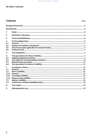 EN 16842-7:2018 is a CEN European standard that specifies visibility test methods and verification for sit‑on self‑propelled variable‑reach and masted container trucks designed to handle freight containers of 6 m (20 ft) length and longer. It defines requirements for 360° operator visibility (direct and indirect) for trucks equipped with a spreader, and is intended to be used in conjunction with EN 16842‑1:2018 (general requirements). This part applies to unladen trucks and covers foreseeable hazardous situations related to operator visibility. It does not apply to trucks fitted with forks.