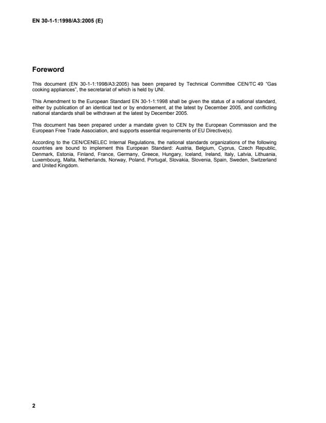 This amendment A3 modifies the European Standard EN 30-1-1:1998; it was approved by CEN on 25 April 2005.
