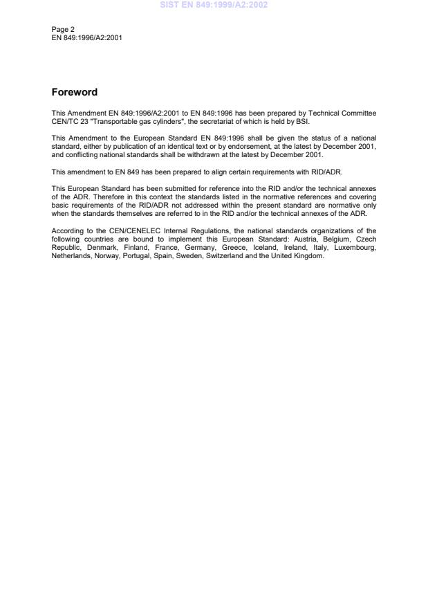 This amendment A2 modifies the European Standard EN 849:1996; it was approved by CEN on 10 May 2001.