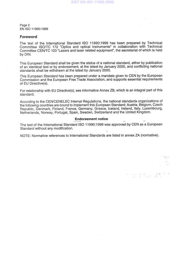 EN ISO 11990:1999 is a standard published by the European Committee for Standardization (CEN). Its full title is "Optics and optical instruments - Lasers and laser-related equipment - Determination of laser resistance of tracheal tube shafts (ISO 11990:1999)". This standard covers: This International Standard specifies a method of testing the laser resistance of the shaft of a tracheal tube. Other components of the system, such as the inflation system and cuff, are outside the scope of this International Standard. The specified test method should be used to measure and describe the properties of materials, products or assemblies in response to heat and flame under controlled laboratory conditions and should not be used to describe or appraidse the fire hazard or fire risk of materials, products, or assemblies under actual fire conditions. However, results of this test may be used as elements of a fire risk assessment of the hazard of a particular end use. NOTE 1: Caution should be observed in interpreting these results, since the direct applicability of the result of this test method to the clinical situation has not been fully established. NOTE 2 : This test method may involve hazardous materials, operations, and equipment. This International Standard does not purport to adress all of the safety problems assosiated with its use. It is the responsibility of the user of this test method to establish appropriate safety and health practiccs and determine the applicability of regulatory limitations prior to use.