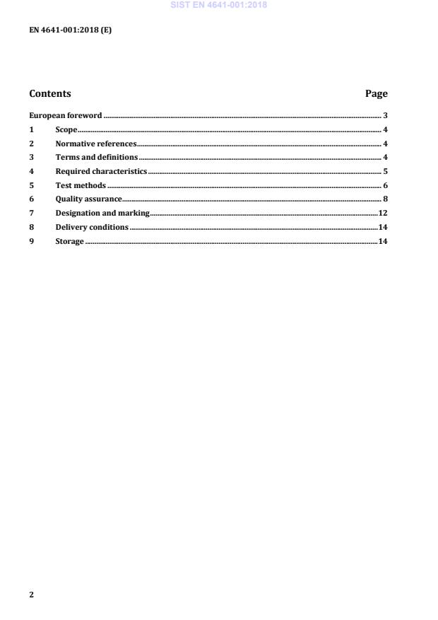 Page European foreword . 3 1 Scope . 4 2 Normative references . 4 3 Terms and definitions . 4 4 Required characteristics . 5 5 Test methods . 6 6 Quality assurance . 8 7 Designation and marking . 12 8 Delivery conditions . 14 9 Storage . 14