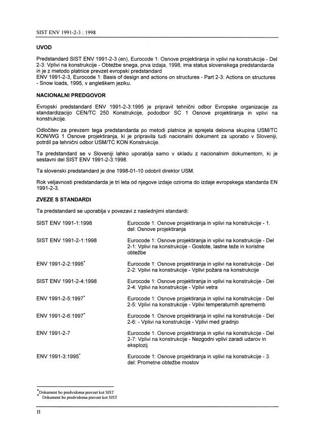ENV 1991-2-3:1995 is a standard + national annex and/or foreword published by the European Committee for Standardization (CEN). Its full title is "Eurocode 1 - Basis of design and actions on structures - Part 2-3: Actions on structures - Snow loads". This standard covers: Migrated from Progress Sheet (TC Comment) (2000-07-10): Splitting of WI 2. Dates refer to ENV ++ 2-Y-Review (therefore re-use of old WI and use of stage 41).