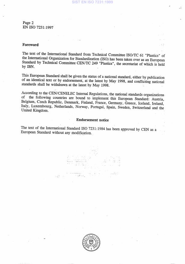 Ta slovenski standard je istoveten z: EN ISO 7231:1997