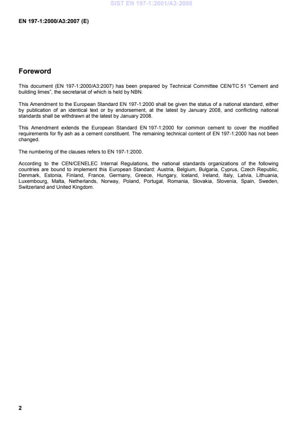 This Amendment extends the European Standard EN 197-1:2000 for common cement to cover the modified