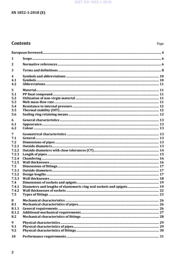 xã Guidance for the assessment of conformity (CEN Technical Specification) This part of EN 1852 includes Annex A (normative) “Utilization of non-virgin PP materials”, Annex B (informative), “General characteristics of PP pipes and fittings” and Annex C (informative), “Product standards of components that can be connected to components conforming to this standard”. SIST EN 1852-1:2018