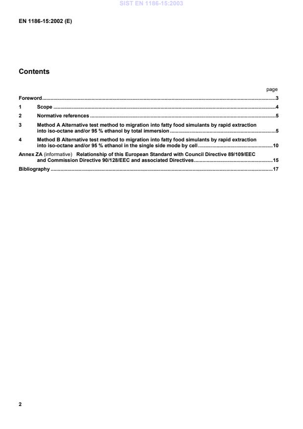 Relationship of this European Standard with Council Directive 89/109/EECand Commission Directive 90/128/EEC and associated Directives.15Bibliography.17SIST EN 1186-15:2003