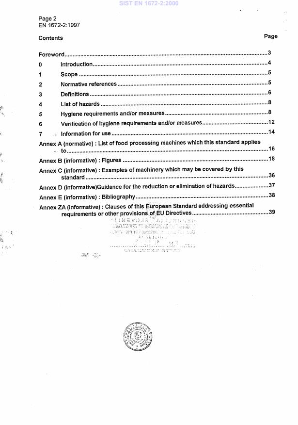 2003-01.Slovenski inštitut za standardizacijo. Razmnoževanje celote ali delov tega standarda ni dovoljeno.Stroji za predelavo hrane - Osnovni pojmi - 2. del: Higienske zahteveNahrungsmittelmaschinen - Allgemeine Gestaltungsleitsätze - Teil 2: HygieneanforderungenMachines pour les produits alimentaires - Notions fondamentales - Partie 2: Prescriptions relatives a l'hygieneFood processing machinery - Basic concepts - Part 2: Hygiene requirements67.260Tovarne in oprema za živilsko industrijoPlants and equipment for the food industryICS:Ta slovenski standard je istoveten z:EN 1672-2:1997SIST EN 1672-2:2000en01-junij-2000SIST EN 1672-2:2000SLOVENSKI