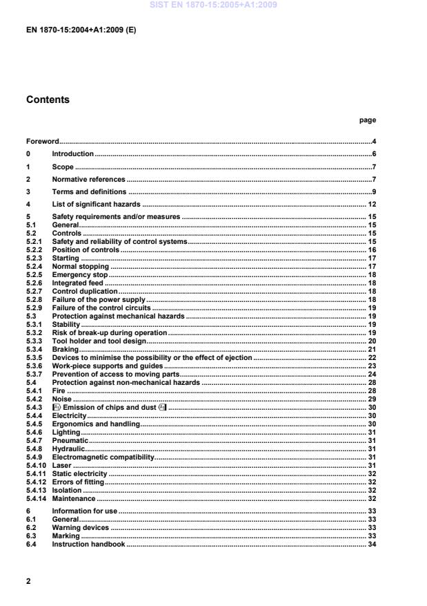 !Relationship between this European Standard and the Essential Requirements of EU Directive 2006/42/EC" . 44Bibliography . 48 SIST EN 1870-15:2005+A1:2009