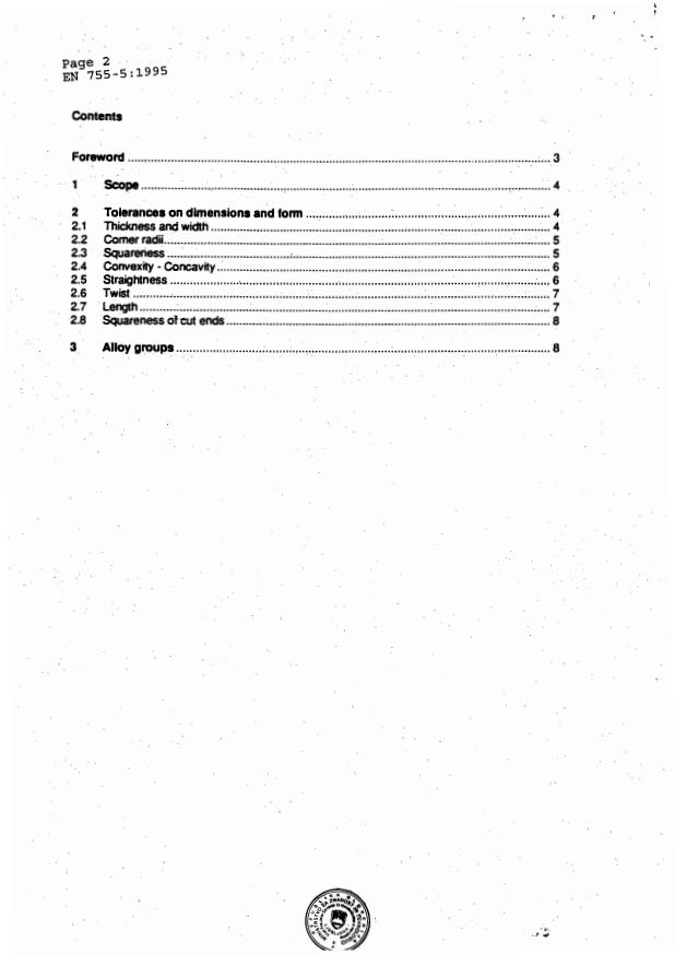 EN 755-5:1995 is a standard published by the European Committee for Standardization (CEN). Its full title is "Aluminium and aluminium alloys - Extruded rod/bar, tube and profiles - Part 5: Rectangular bars, tolerances on dimensions and form". This standard covers: This part of EN 755 specifies the tolerances on dimensions and form for aluminium and aluminium alloy extruded rectangular bars having thicknesses in the range from 2 mm up to 240 mm and widths in the range from 10 mm up to 600 mm.