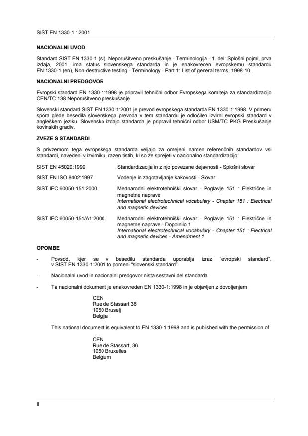 - Ta nacionalni dokument je enakovreden EN 1330-1:1998 in je objavljen z dovoljenjem