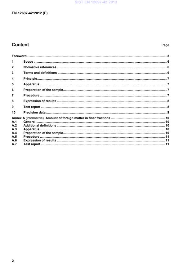 Amount of foreign matter in finer fractions . 10A.1 General . 10A.2 Additional definitions . 10A.3 Apparatus . 10A.4 Preparation of the sample . 10A.5 Procedure . 11A.6 Expression of results . 11A.7 Test report . 11 SIST EN 12697-42:2013