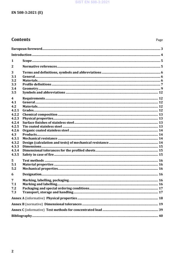 EN 508-3:2021 is a standard published by the European Committee for Standardization (CEN). Its full title is "Roofing and cladding products from metal sheet - Specification for self-supporting products of steel, aluminium or stainless steel sheet - Part 3: Stainless steel". This standard covers: This part of EN 508 specifies requirements for self-supporting products for roof covering, wall cladding, lining, liner tray and tile products for discontinuous laying made from stainless steel sheets with or without additional metallic and/or organic coatings. Sheets intended to be used with insulation and membranes are also covered. This document establishes general characteristics, definitions, classifications and labelling for the products, together with requirements for the materials from which the products can be manufactured. It is intended to be used either by manufacturers to ensure that their products comply with the requirements or by purchasers to verify that the products comply before they are dispatched from the factory. It specifies the requirements for products which enable them to meet all normal service conditions. This document applies to all discontinuously laid self-supporting external profiled sheets for roof covering, wall cladding, lining, liner trays and tile products with the exception of tiles with a surface area less than 1 m2 and produced by stamping. These profiled roof sheets are designed to keep wind, rain and snow out of the building and to transfer any resultant loads and infrequent maintenance loads to the structure. This document does not cover products for structural purposes, i.e. it does cover products used in structural class III (according to EN 1993-1-3), it does not cover products used in constructions of structural classes I and II (according to EN 1993-1-3) intended to contribute to the global or partial stability of the building structure by providing racking resistance or resistance to permanent static loads (excluding self-weight of the metal sheet). No requirements for supporting construction, design of roof or cladding, lining, tile system and execution of connections and flashings are included.
