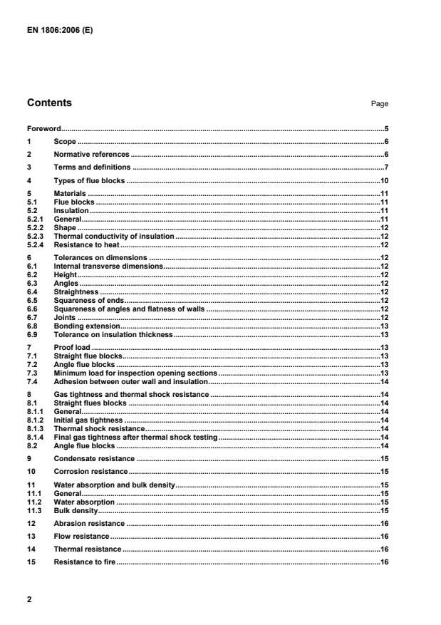 EN 1806:2006 organizes technical content around performance, dimensional tolerances and laboratory tests. Key topics include: