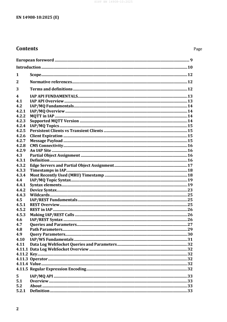 Keywords: EN 14908-10:2025, EN 14908-10, building automation, control network protocol, web services, IoT gateway, MQTT, REST, WebSocket, device provisioning, open data communication.