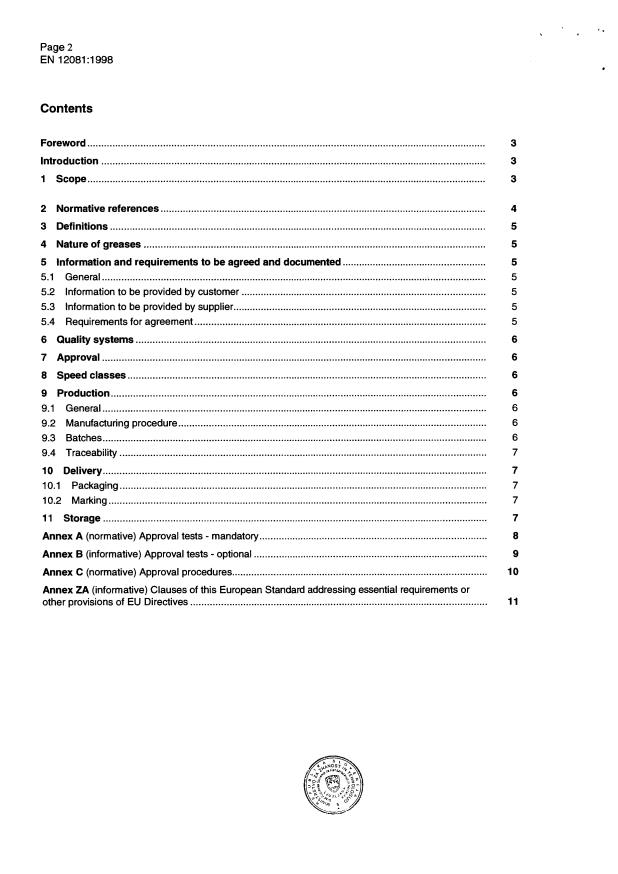 Diese Europäische Norm legt die Qualitätsanforderungen von Schmierfetten für Wälzlager in Radsatzlagern nach EN 12080 fest, die für einen zuverlässigen Zugbetrieb auf den europäischen Schienennetzen erforderlich sind. Sie beschreibt für diese Schmierfette die Freigabeverfahren, die Verfahren der Qualitätssicherung und -überwachung. Die Anforderungen an die Schmierfette sind für zwei Geschwindigkeitsklassen angegeben.