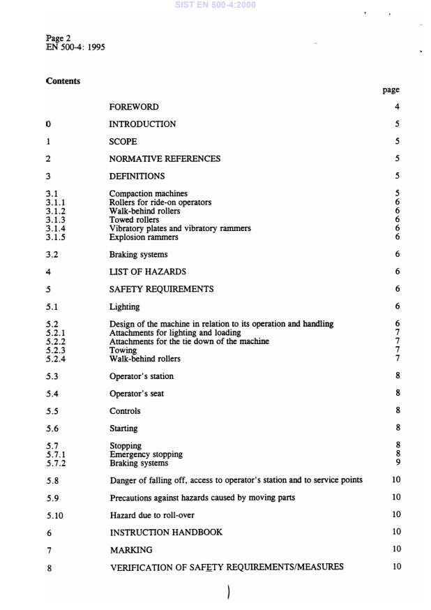 EN 500-4:1995 is a standard published by the European Committee for Standardization (CEN). Its full title is "Mobile road construction machinery - Safety - Part 4: Specific requirements for compaction machines". This standard covers: This part of EN 500 specifies the safety requirements for compaction machines as defined in clause 3 and deals with the significant hazards pertinent to compaction machines, when used as intended and in conditions foreseen by the manufacturer.