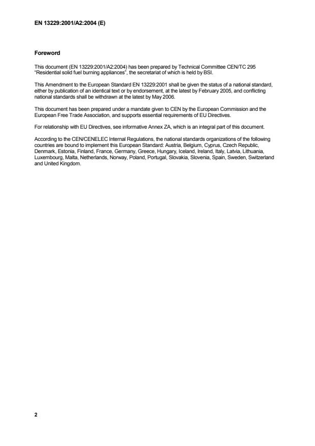 This amendment A2 modifies the European Standard EN 13229:2001; it was approved by CEN on 18 June 2004.