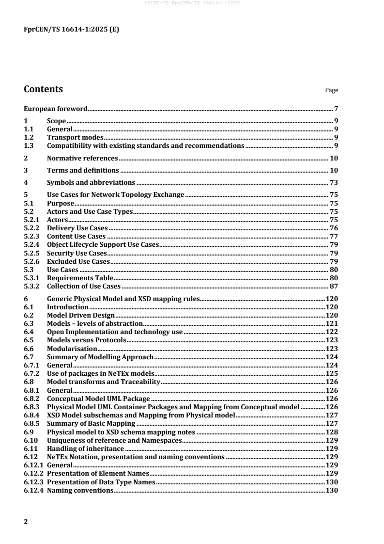 FprCEN/TS 16614-1, published by CEN, defines the public transport network topology exchange format as part of the NeTEx (Network and Timetable Exchange) standard series. This specification focuses on enabling efficient, structured, and interoperable data exchange of public transport network topology information across Europe and beyond.