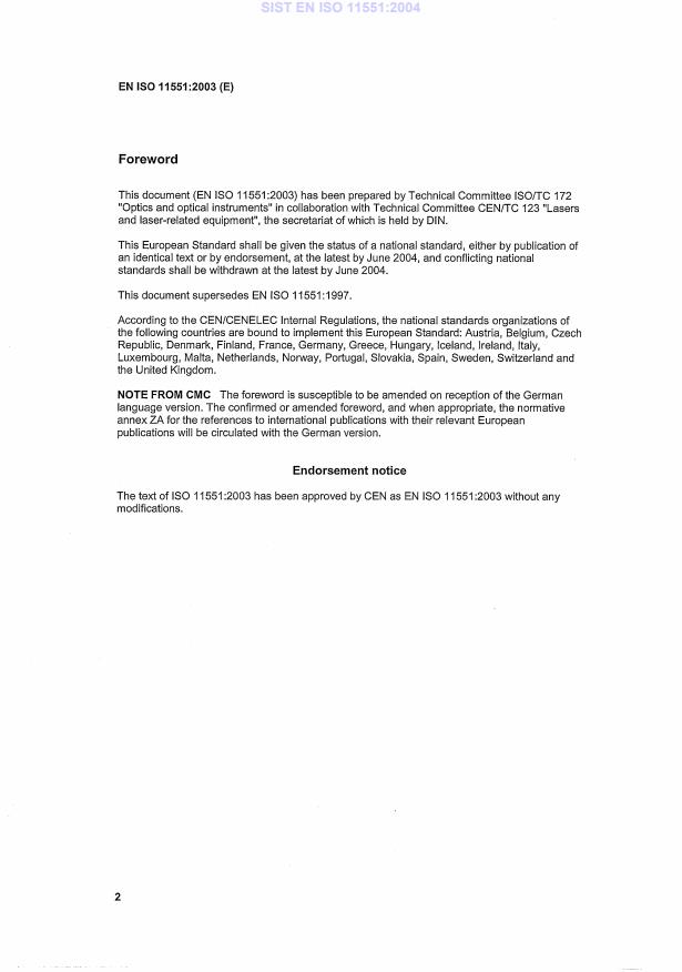 Optika in optični instrumenti – Laserji in laserska oprema – Preskusna metoda za absorpcijo optičnih laserskih komponent (ISO 11551:2003)