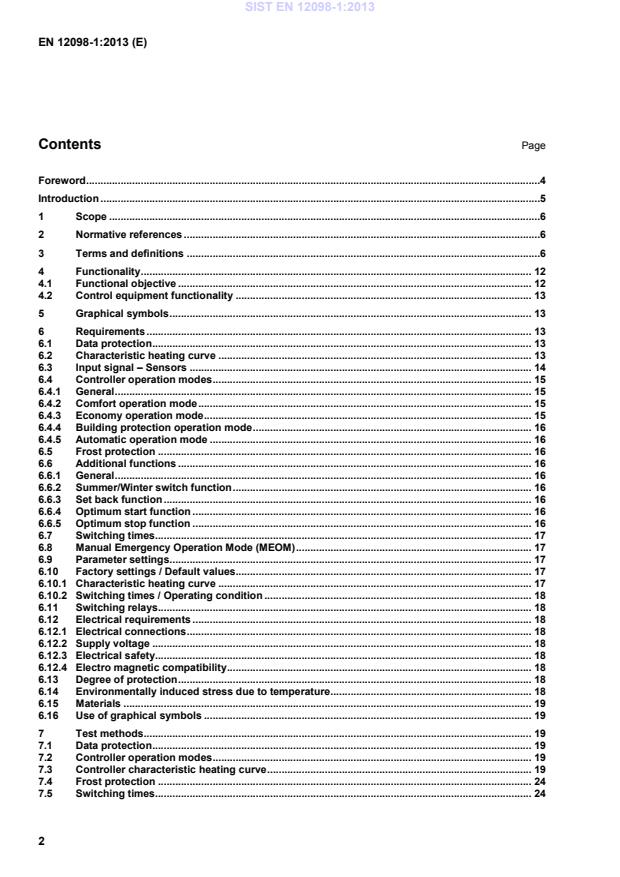 This European Standard applies to electronic control equipment for heating systems with water as the heating medium and a flow water temperature up to 120 °C. This control equipment controls and regulates the distribution and/or the generation of heat in relation to the outside temperature and time and other reference variables. This standard covers also controllers which contain an integrated optimum start or an optimum start-stop control function. Safety requirements on heating systems remain unaffected by this standard. The dynamic behaviour of the valves and actuators are not covered in this standard. A multi-distribution and/or multi-generation system needs a coordinated solution to prevent undesired interaction and is not part of this standard. 2 Normative references The following documents, in whole or in part, are normatively referenced in this document and are indispensable for the application of this document. For dated references, only the edition cited applies. For undated references, the latest edition of the referenced document (including any amendments) applies. CEN/TS 15810, Graphical symbols for use on integrated building automation equipment EN 60038, CENELEC standard voltages (IEC 60038) EN 60529, Degrees of protection provided by enclosures (IP Code) (IEC 60529) EN 60730-1, Automatic electrical controls for household and similar use — Part 1: General requirements (IEC 60730-1) 3 Terms and definitions For the purposes of this document, the following terms and definitions apply. 3.1 Outside Temperature Compensated Controller