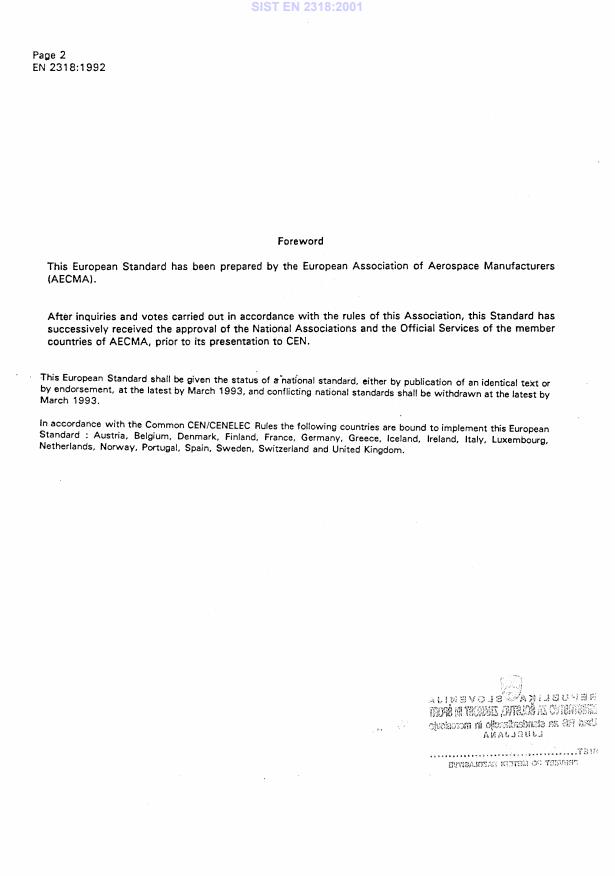 Compliance with EN 2318:1992, alongside these related standards, helps aerospace suppliers meet rigorous international quality and safety benchmarks, facilitating global interoperability and acceptance.