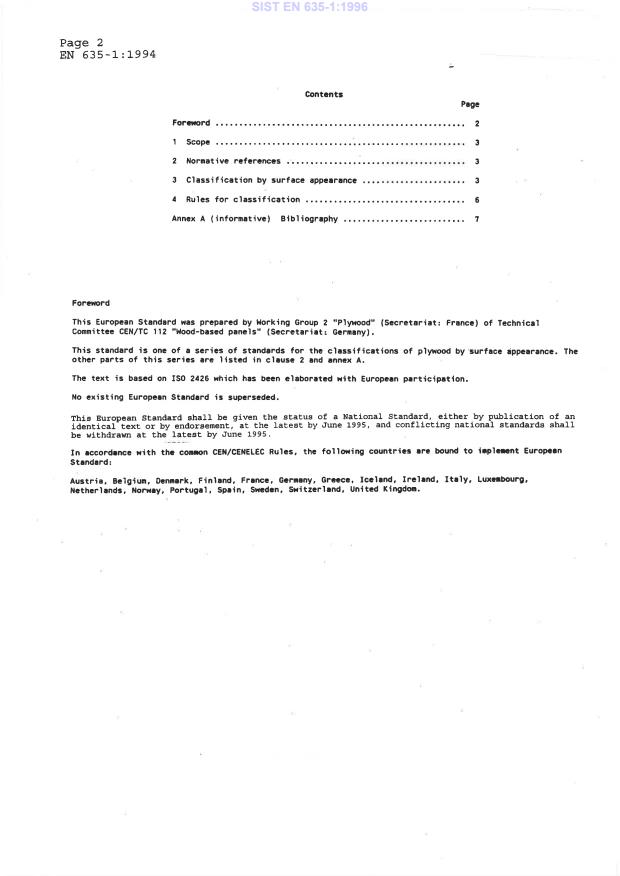 EN 635-1:1994 is a standard published by the European Committee for Standardization (CEN). Its full title is "Plywood - Classification by surface appearance - Part 1: General". This standard covers: This part of EN 635 establishes general rules for the classification of plywood by its surface appearance. It does not apply to overlaid plywood.