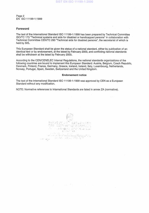 EN ISO 11199-1:1999 is classified under the following ICS (International Classification for Standards) categories: 11.180 - Aids for disabled or handicapped persons. The ICS classification helps identify the subject area and facilitates finding related standards.