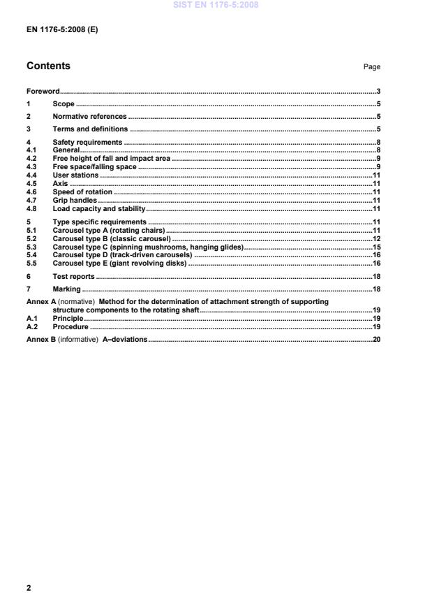 d diameter of the circle described by the construction element farthest away from the centre of the rotational axis where the carousel is in use 3.11 carousel axis central shaft on which the supporting structure is pivot-mounted and that is rigidly connected to the founda-tions or installation components NOTE The carousel axis can also be a theoretical line when the carousel structure is mounted on a circular track. 4 Safety requirements 4.1 General Carousels shall conform to EN 1176-1 unless otherwise specified in this part of EN 1176. NOTE Hand rails provided on carousels need not meet the height requirements given in EN 1176-1:2008, 4.2.4.2.
