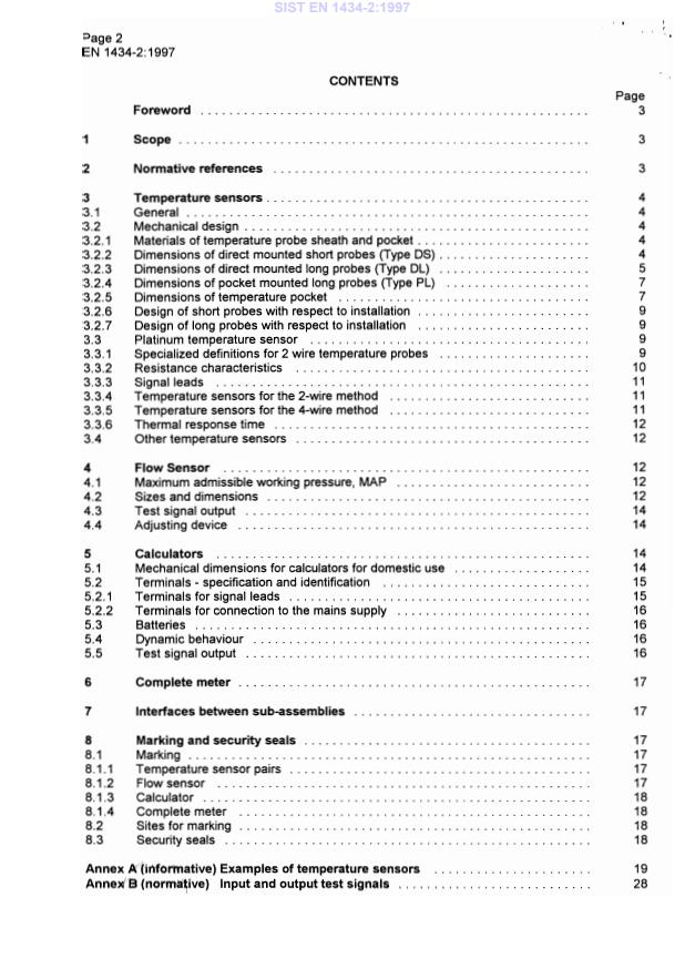 EN 1434-2:1997 is a standard published by the European Committee for Standardization (CEN). Its full title is "Heat meters - Part 2: Constructional requirements". This standard covers: This European Standard applies to heat meters, that is to instruments intended for measuring the heat which, in a heat-exchange circuit, is absorbed or given up by a liquid called the heat-conveying liquid. The heat meter indicates the quantity of heat in legal units. Electric safety requirements are not covered by this standard. Meters with surface mounted temperature sensors are not yet included in this standard. Part 2 covers constructional requirements.