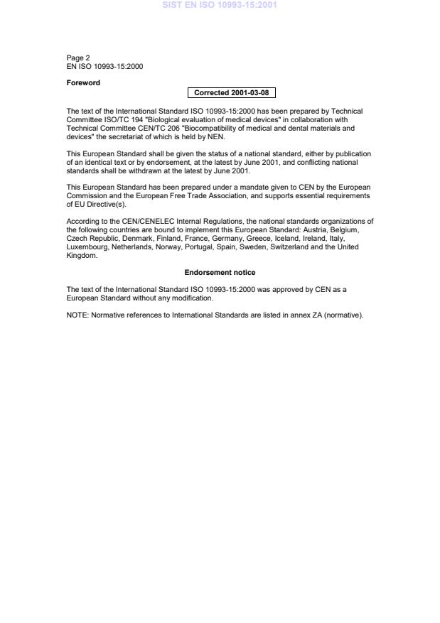 The text of the International Standard ISO 10993-15:2000 has been prepared by Technical