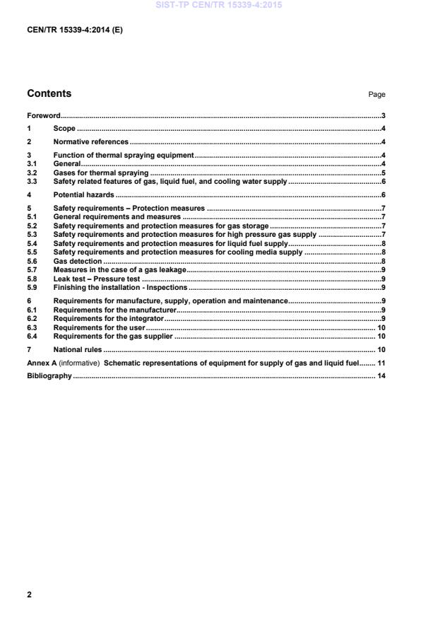 This Technical Report specifies with safety requirements of equipment for thermal spraying, in this case of gas supply including supply of liquid fuels. It deals with safety requirements for storage and the high pressure piping system from storage to the gas control unit or pressure regulator equipment. Safety requirements for gas hoses, hose assembly and torches are presented in CEN/TR 15339-3.