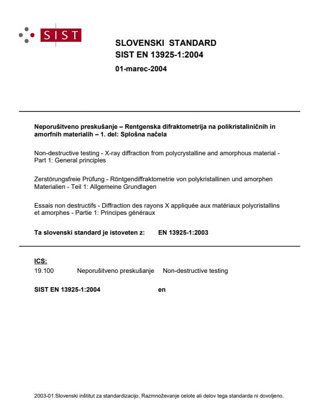 Neporušitveno preskušanje – Rentgenska difraktometrija na polikristaliničnih in amorfnih materialih – 1. del: Splošna načela