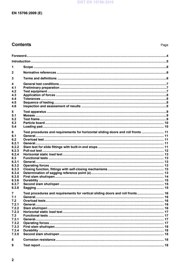 Keywords: EN 15706:2009, slide fittings, sliding doors, roll fronts, strength and durability, test methods, CEN, corrosion test, operating forces, durability tests.