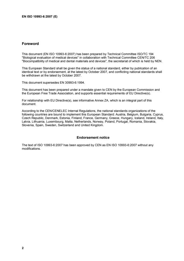 This document (EN ISO 10993-6:2007) has been prepared by Technical Committee ISO/TC 194