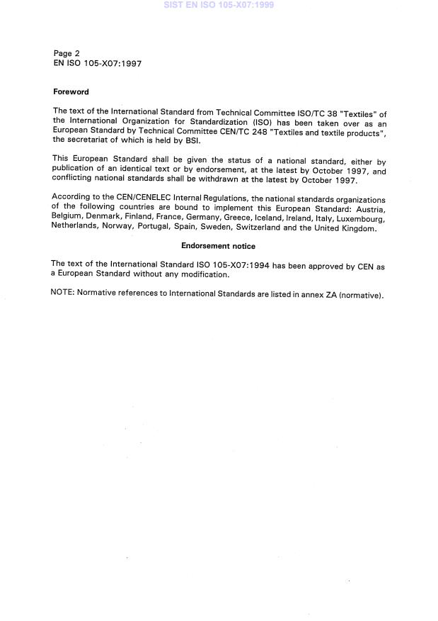 Ta slovenski standard je istoveten z: EN ISO 105-X07:1997