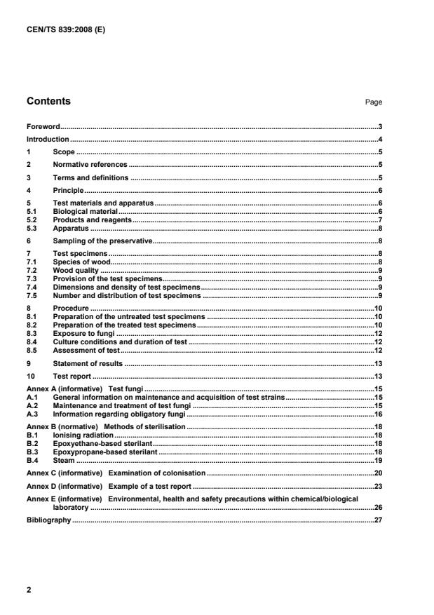 CEN/TS 839:2008 is a technical specification published by the European Committee for Standardization (CEN). Its full title is "Wood preservatives - Determination of the protective effectiveness against wood destroying basidiomycetes - Application by surface treatment". This standard covers: This European Standard specifies a method of test for the determination of the protective effectiveness of a wood preservative, applied to the surface of the wood, against wood destroying basidiomycetes cultured on an agar medium. The method is applicable to all products which are to be applied by superficial application processes. This includes : - organic solvent-based wood preservatives ; or - organic water-dispersible formulations, as supplied or as prepared in the laboratory by dilution of concentrates ; or - water-soluble products ; or - chemicals which are being studied as active ingredients for application by superficial processes. NOTE This method may be used in conjunction with an ageing procedure, for example EN 73.