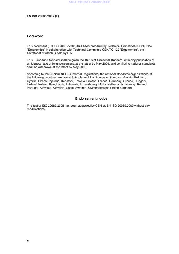 This document (EN ISO 20685:2005) has been prepared by Technical Committee ISO/TC 159