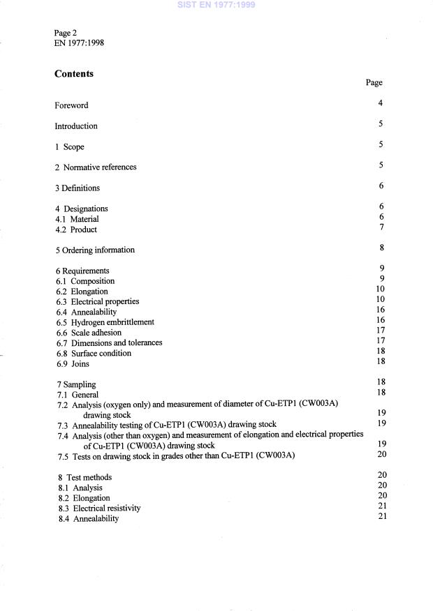 EN 1977:1998 is a standard published by the European Committee for Standardization (CEN). Its full title is "Copper and copper alloys - Copper drawing stock (wire rod)". This standard covers: This European Standard specifies the composition, mechanical, electrical and physical properties for high conductivity copper drawing stock (wire rod) suitable for fabrication into wire by cold drawing, principally for the manufacture of electrical conductors. The standard covers drawing stock (wire rod), in nine grades of copper and nine silver-bearing copper grades. Normally, the cross-section is approximately circular, in a range of diameters from 6 mm.