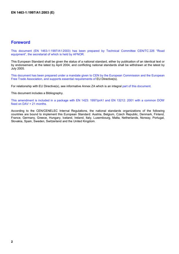 This document (EN 1463-1:1997/A1:2003) has been prepared by Technical Committee CEN/TC 226 “Road