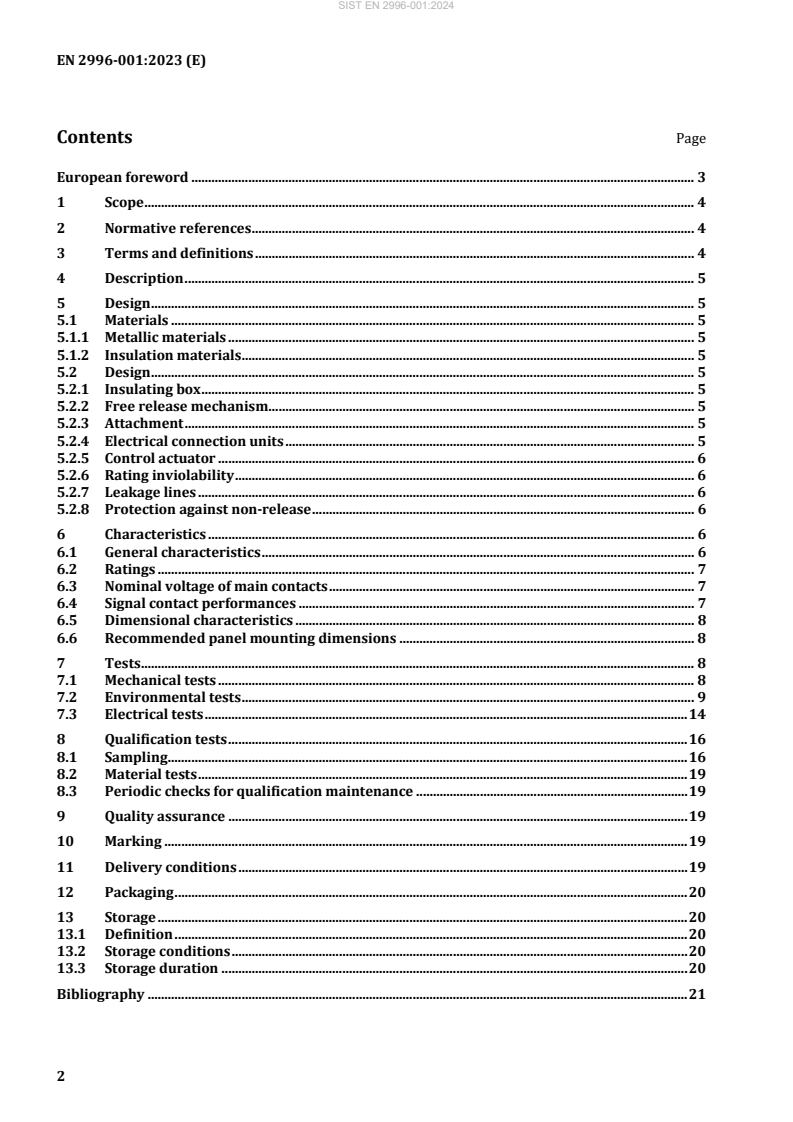 EN 2996-001:2023 is a CEN aerospace series technical specification for three-pole, temperature-compensated circuit breakers rated from 1 A to 25 A for use in aircraft on-board circuits. Approved in November 2023 and superseding the 2006 edition, this standard defines environmental, electrical and mechanical characteristics, design rules and the stringency of tests to be applied (using the test methods of EN 3841-100). It applies to circuit breakers with signal contacts (polarized or not) intended for aircraft electrical supplies in accordance with EN 2282.