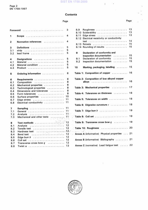 Keywords: EN 1758:1997, copper and copper alloys, strip for lead frames, lead frame material, integrated circuits, high power devices, dimensional tolerances.